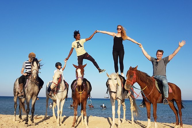This is one of the most exotic destinations for horseback riding in Egypt, and to top it off, it is reasonably priced! The ancient horse culture is very much alive in Egypt, and it is doubtful that any part of the world can match its rich and broad mosaic of history. Take this horseback tour with the finest bred horses and experienced trainers. Horse trainers are also provided to give you pre-ride coaching, and to assist you throughout your ride. Another must-do excursion activity while in Hurghada, for horse lovers of all kinds! This is a family friendly activity. Traveler safety: • This tour is child appropriate • A helmet is provided to each rider • Pregnant women are not permitted to ride a horse • A disclaimer form against damage and personal injury is required to be signed prior to the tour • Horse at both desert and sea riding